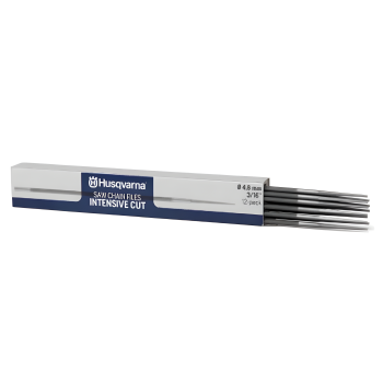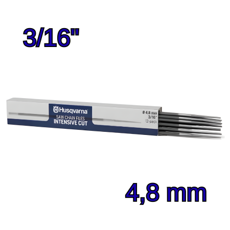 Kit com 12 limas redondas de 3/16" (4,8 mm), ideal para afiação de correntes de motosserra.