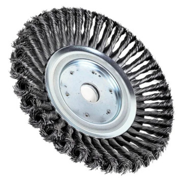 Esta escova rotativa de aço é indicada para uso exclusivo em roçadeiras, no corte de grama baixa, musgos e mato em áreas pavimentadas como calçadas de paver ou paralelepípedos, calçadas verdes, cantos de paredes, entre outros.